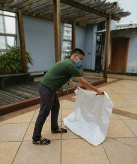 李松波老师演示灭火毯的使用